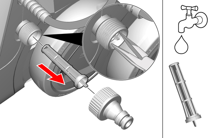 Tisztítsa meg a vízcsatlakozás szitáját.
