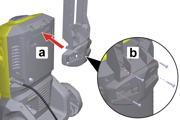 Skjut in förvaringen för högtryckspistolen i fästet på maskinen.
