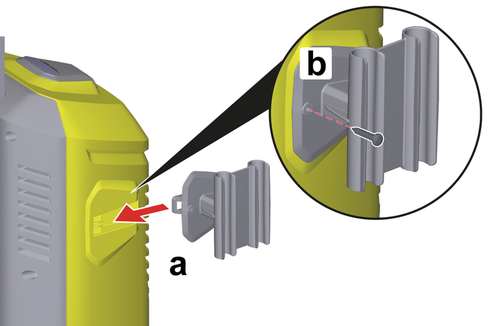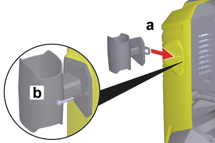 Håll förvaringen för strålrör i ändläget och fäst den med en skruv.