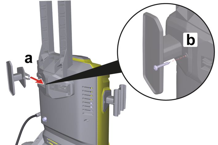 Håll förvaringen för högtrycksslangen/nätanslutningsledningen i ändläget och fäst den med en skruv.