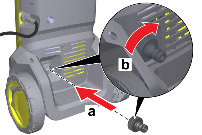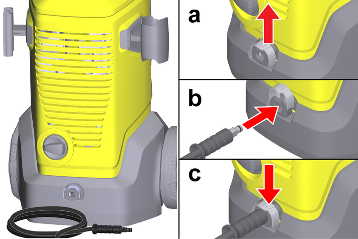Stick in högtrycksslangen i spolhandtaget tills den hakar fast med ett hörbart klick.