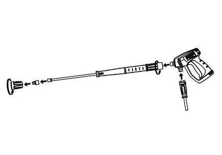 Bevestig de spuitkop op de spuitlans met het schroefverbindingsstuk.