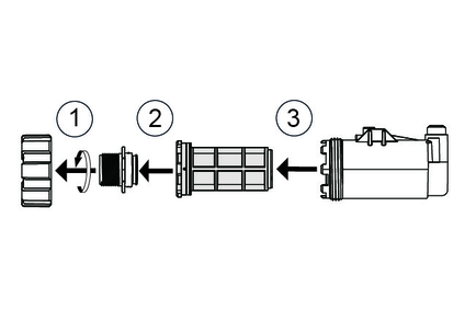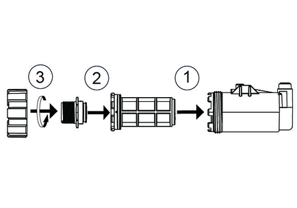 Zuigslang (bestelnummer 4.440-207.0) en filter (bestelnummer 4.730-012.0) op de wateraansluiting schroeven.