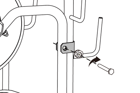 Zet het hogere deel van de machine en de slanghaspel vast met vergrendelingen. Maak de vergrendelingen vast met bevestigingsmiddelen.