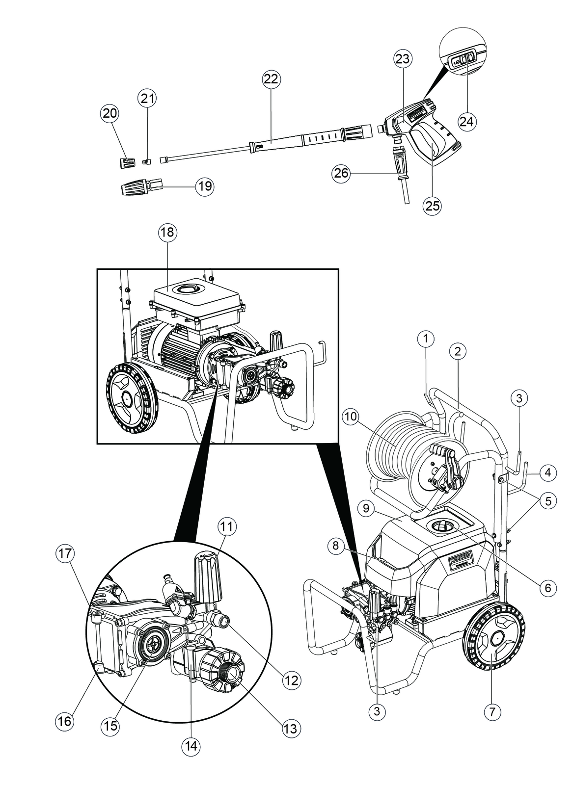 如果高压喷枪关闭,溢流阀打开,全部水量将流回泵吸入侧。