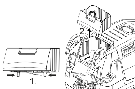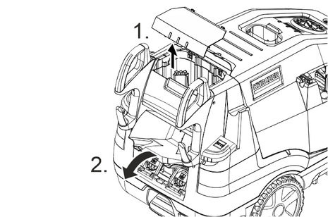 KÄRCHER製品のみを使用してください。溶剤 ( 例:ガソリン、アセトン、シンナーなど) は、絶対に入れないでください。目や皮膚に触れないようにしてください。洗浄剤メーカーの安全性および取り扱いに関する指示を守ってください。Kärcherでは、個別のクリーニングおよびケアをご提供しています。販売店にご相談ください。