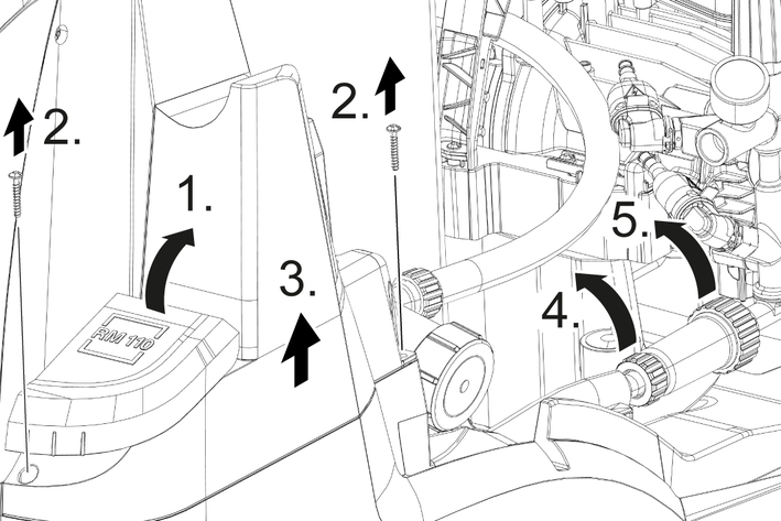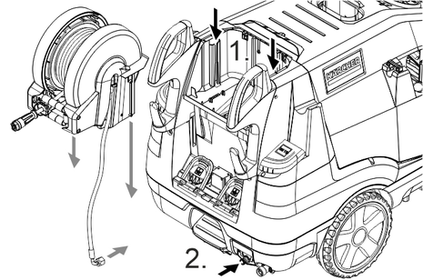 運転を開始する前に、高圧ホースを完全に引き出してください。RM 110は、ボイラー加熱時に水に含まれているミネラル分がボイラー内で硬化するのを抑制しています。