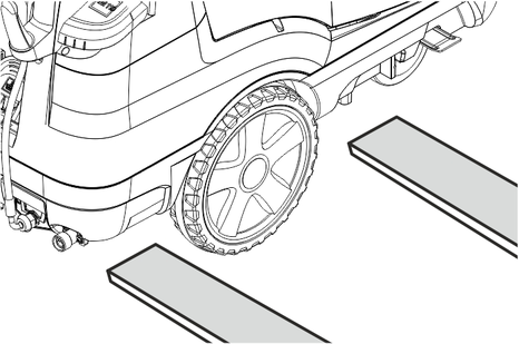 機器、付属品、供給ライン、接続部が完全な状態であることを確認します。万全の状態でない場合は、機器を使用しないでください。前輪用パーキングブレーキをロックします。