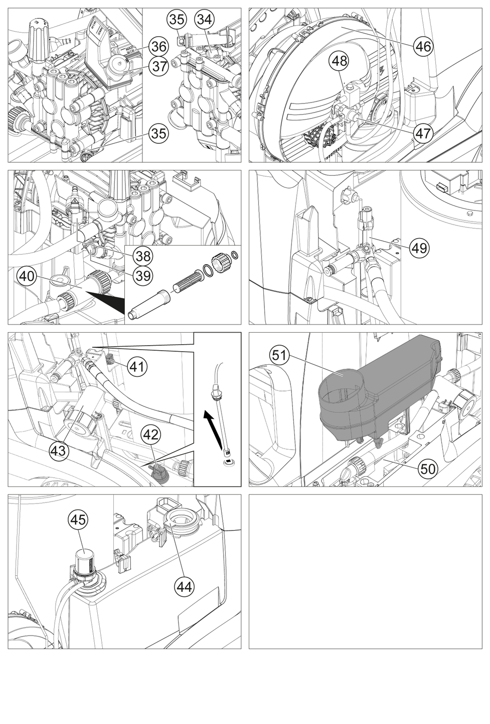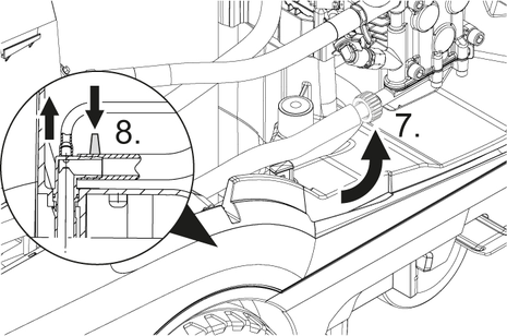 洗浄剤ホースを取り外し、逆止弁を交換または清掃してください。