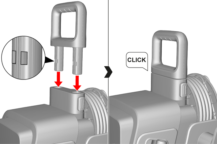 Hajtsa fel a teleszkópos fogantyút hallható kattanásig.