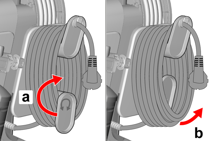A ravasz elengedését követően a magasnyomású pumpa nyomáskapcsolója kikapcsol és a magasnyomású sugár megszűnik. Ha a kihúzókart meghúzzuk, a magasnyomású pumpa bekapcsol.