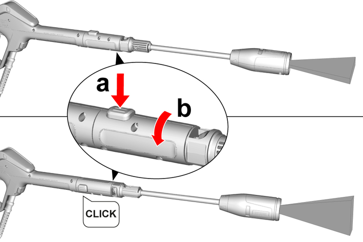 ![]() | Ne irányítsa a magasnyomású sugarat emberekre, állatokra, működő elektromos berendezésekre vagy közvetlenül a készülékre. Óvja a készüléket a fagytól. |