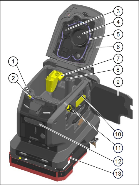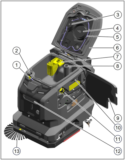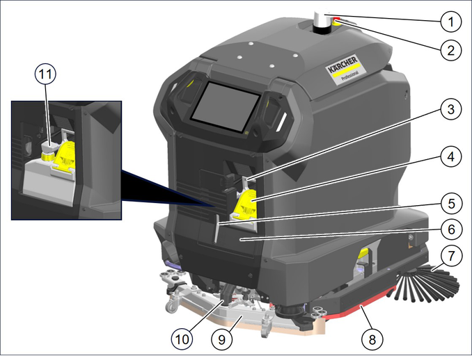 In diesem Gerät sind Lithium-Ionen Batterien eingebaut. Diese unterliegen besonderen Kriterien. Der Ausbau und Einbau sowie Prüfung defekter Batterien dürfen nur durch den Kärcher-Kundendienst oder eine Fachkraft erfolgen.