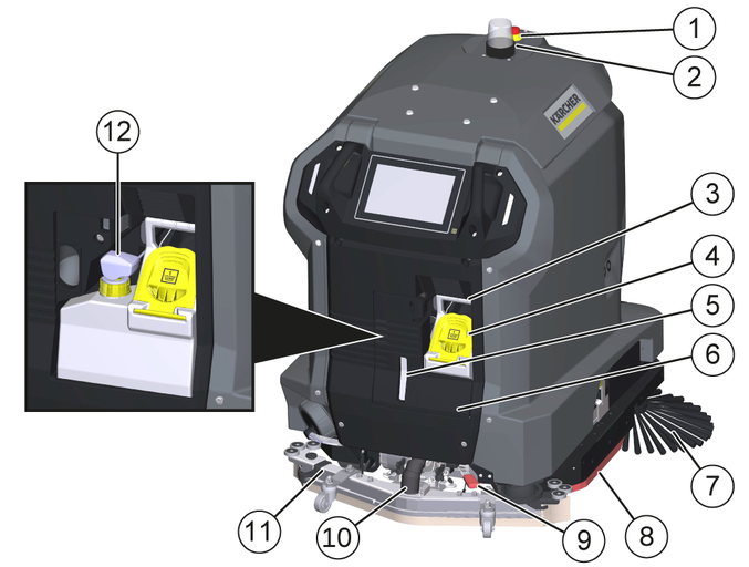 Bojātu akumulatoru neizmetiet sadzīves atkritumos. Informējiet Kärcher klientu apkalpošanas dienestu.