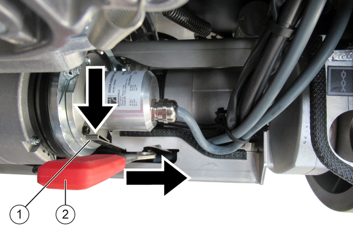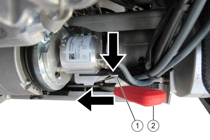 Pirms tīrīšanas, apkopes, detaļu nomaiņas vai funkciju pārslēgšanas panāciet ierīces drošu apstāšanās stāvokli, nospiežot avārijas apturēšanas pogu. Tikai drošā apstāšanās stāvoklī tiek deaktivizētas visas bīstamās mehāniskās funkcijas. Displejs paliek aktīvs, lai rādītu apkopes instrukcijas un nodrošinātu darbību drošu un pareizu izpildi.