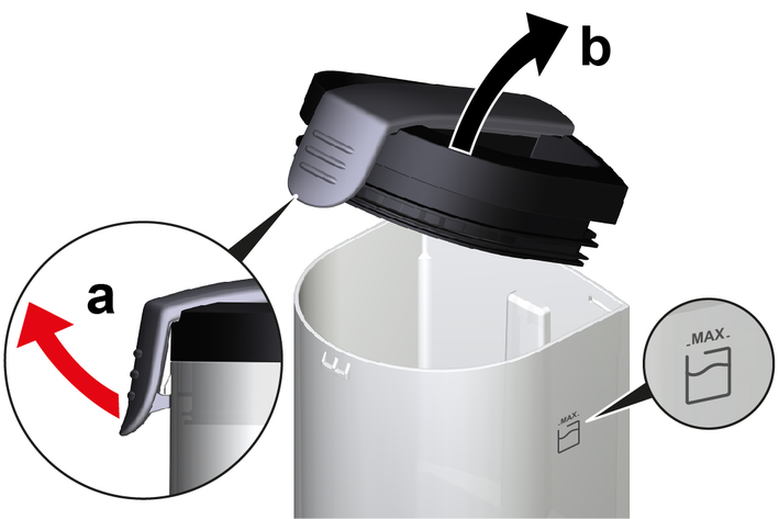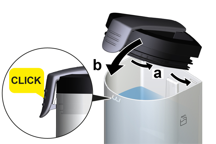 Reinsert the fresh water tank into the device, see chapter Filling the fresh water tank.