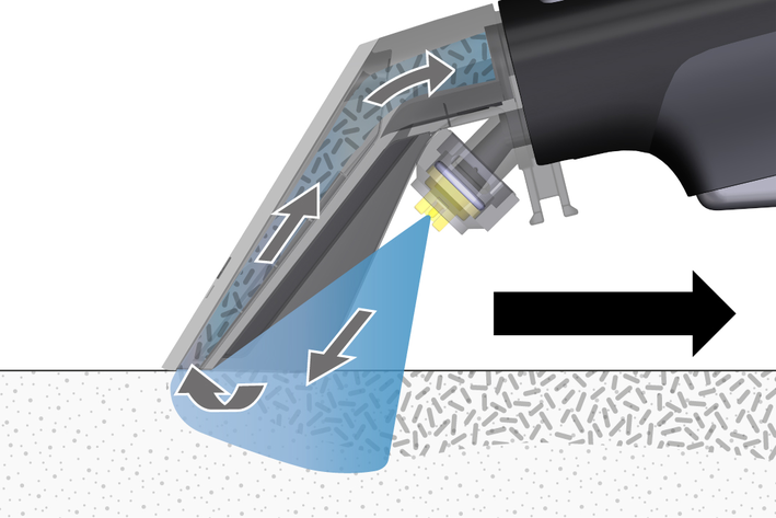 Using the spot brush enables additional fibre-deep cleaning of stubborn stains on textiles.
