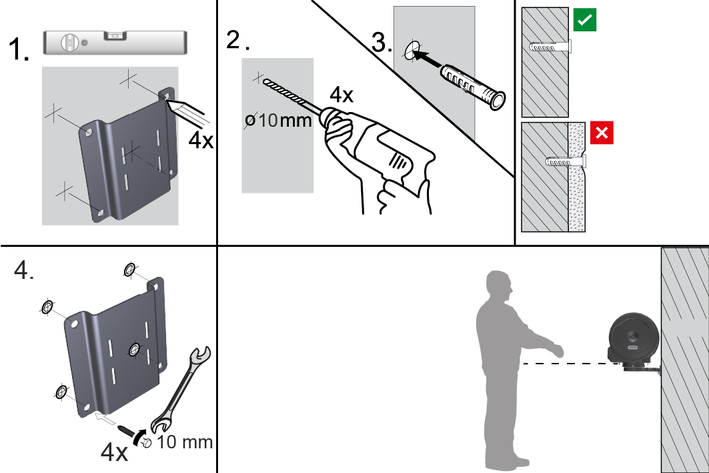 Die Fixierplatte für die Wandhalterung mit den beiliegenden Schrauben befestigen.