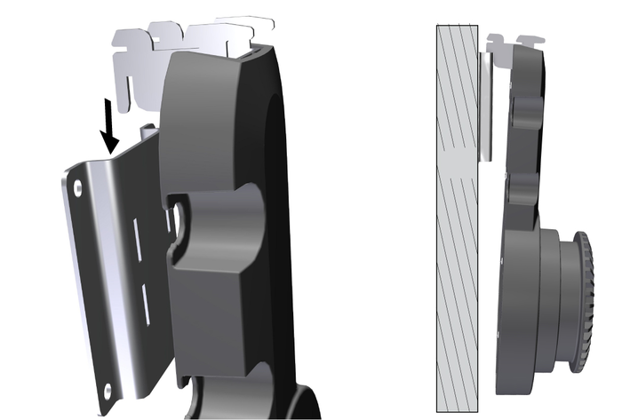 Die Wandhalterung nach unten schieben, bis alle 4 Haken fest in der Fixierplatte sitzen.