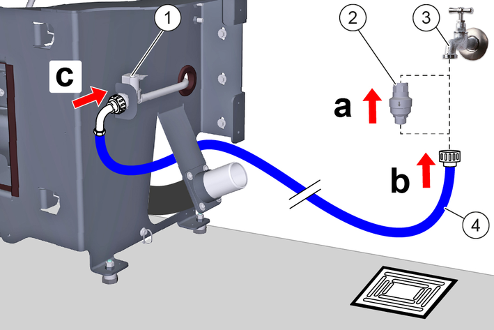 Screw the Aquastop hose onto the building's water tap or onto the optional water stop valve.