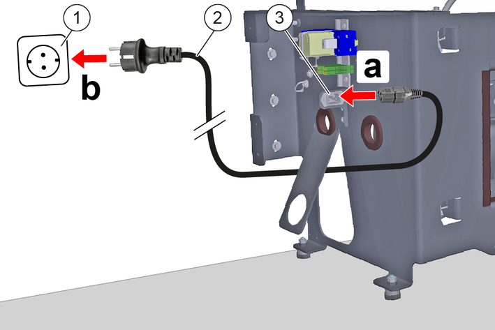 Only operate the device at sockets with an earthing contact and with an error current circuit breaker with a nominal fault current of max. 30 mA.Connect the power cable: