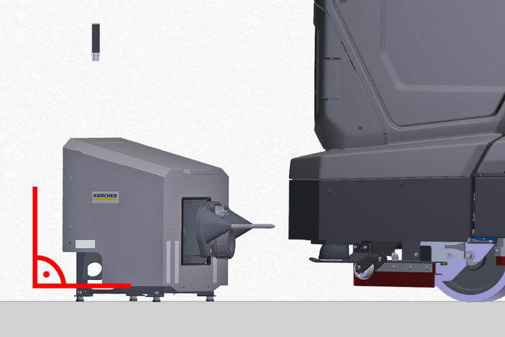 Move the machine centrally in front of the tips of the docking station centring cones.