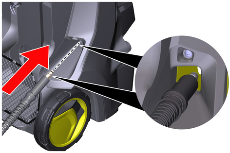 шланг високого тиску протягнути ззаду через направляючу для шланга.