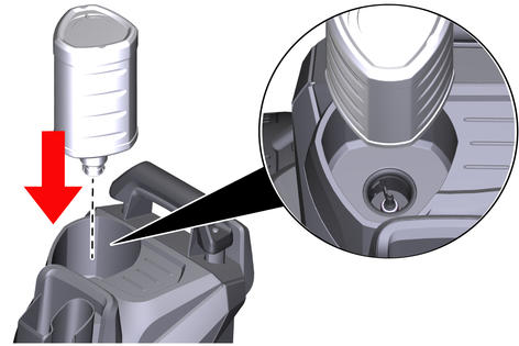 Перевірити, чи вставлений контейнер з мийним засобом Plug 'n' Clean отвором вниз у патрубок подачі мийного засобу.