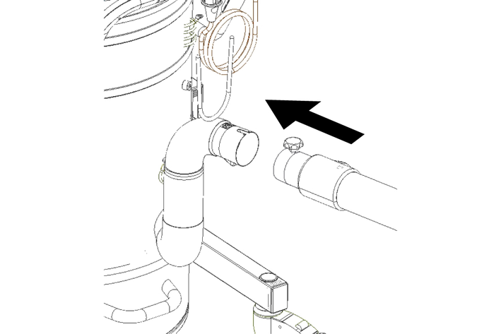 Desconectar la manguera de desagüe del acoplamiento de mangueras superior.