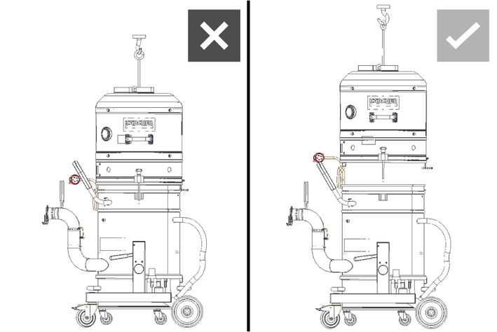 Levantar el cabezal de aspiración con una grúa y colocarlo sobre una superficie adecuada.