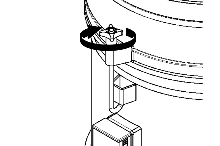 Bajar el recipiente de líquidos empujando la palanca hacia abajo.