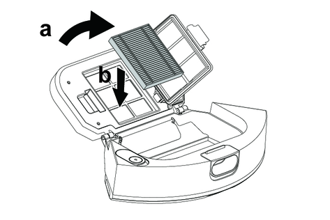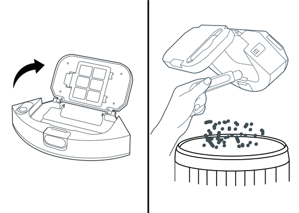 Empty the 2-in-1 dust container with water reservoir or the dust container, see chapter Emptying the 2-in-1 dust container with water reservoir.