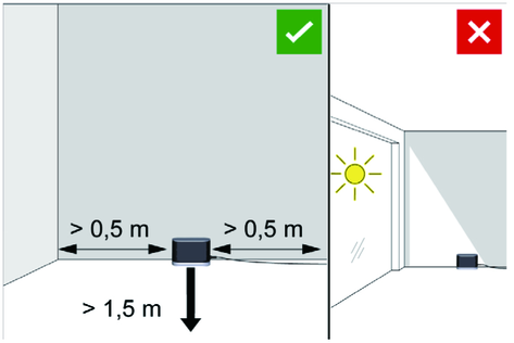 Do not operate the device in rooms that are secured with an alarm system or motion sensor.