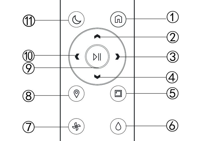 ![]() | Standby/charging mode: Press once to start the all rooms cleaning with silent mode. Press again to pause the task. |