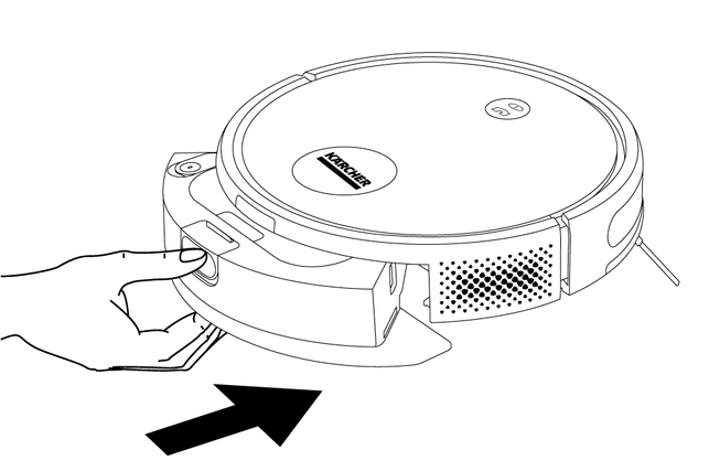 Make sure that the 2-in-1 dust container with water reservoir or the dust container is installed and correctly latched into place, see chapter Installing 2-in-1 dust container with water reservoir.