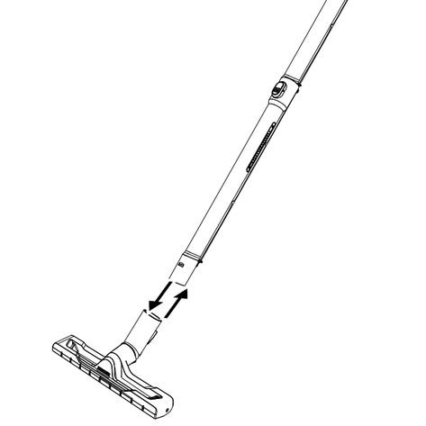 For å rengjøre gulv- og tekstilmunnstykket må festingen av munnstykket løsnes med dreiing og sprøytmunnstykket må trekkes ut.