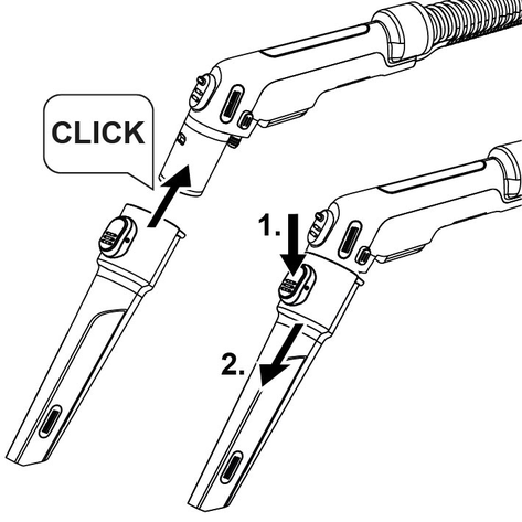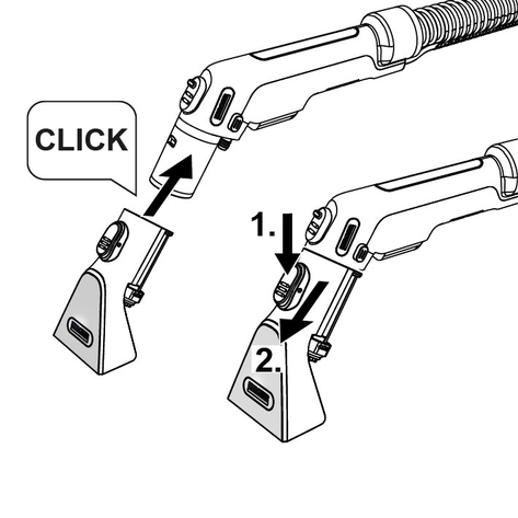Sett sammen sprøytesugerørene for rengjøring av gulv, og koble dem til sugeslangen, det skal høres at alle delene går i lås.