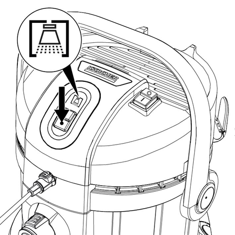 For å sprøyte vannet med rengjøringsmiddelet må du trykke på bryteren for sprøyting.