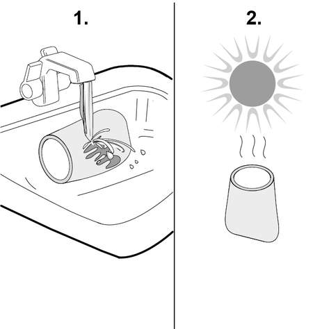 For at det ikke skal oppstå vannpytter i oppholdsrommet (f.eks. på gulvtepper, parkett), må du la den gjenværende væsken renne inn i en egnet beholder (f.eks. vask, bøtte).