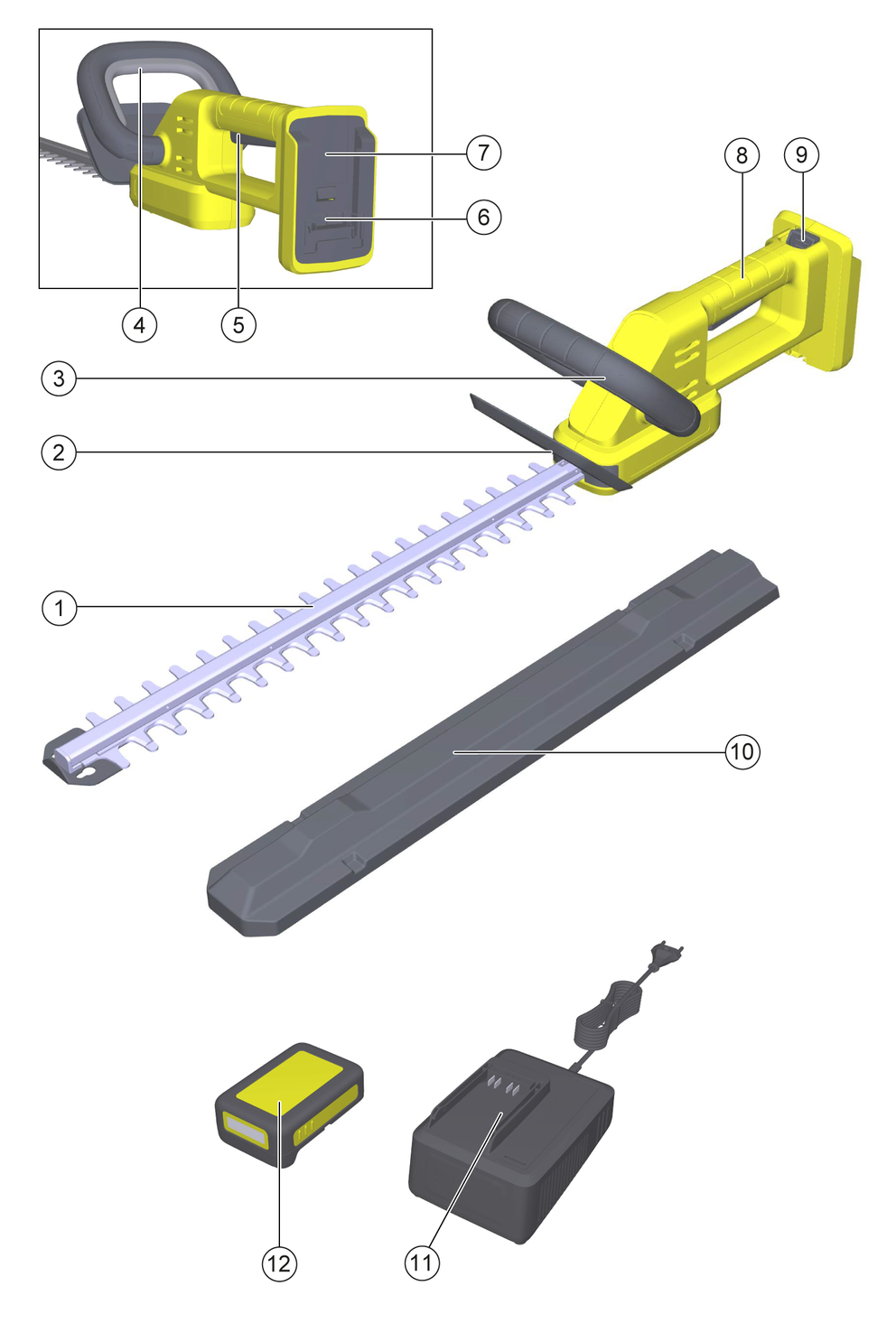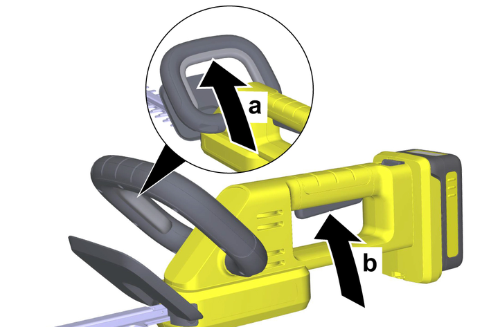 Дръжте ножицата за жив плет само за изолираните повърхности за захващане, тъй като режещият нож може да докосне скрити електрически проводници. Остриетата, влизащи в контакт с проводник под напрежение, може да поставят откритите метални части на ножицата за плет под напрежение и да предизвикат токов удар.