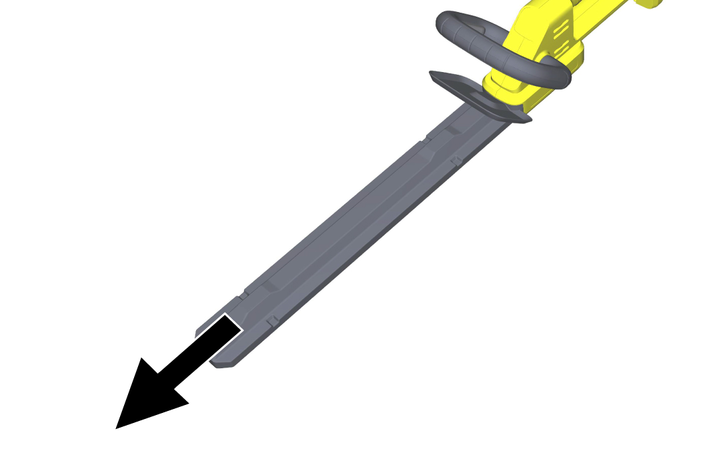 Когато почиствате заседнал материал или обслужвате уреда, се уверете, че всички превключватели на захранването са изключени и батерията е извадена или изключена. Неочакваното задействане на ножицата за плет по време на почистване на заседнал материал или обслужване може да доведе до сериозно нараняване.
