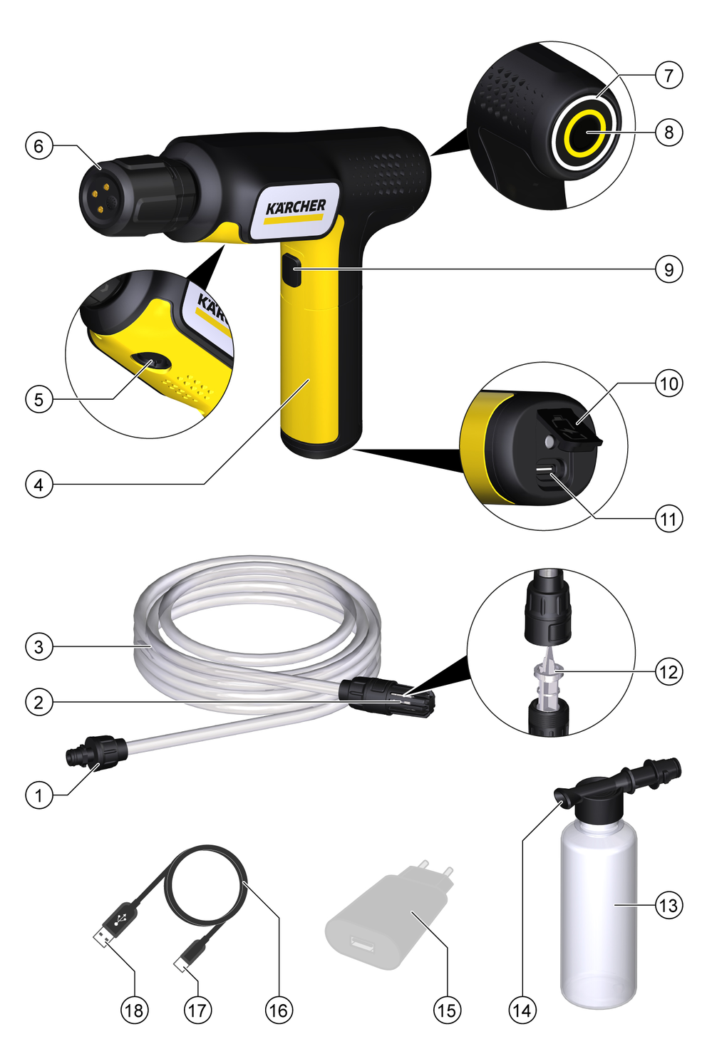 仅限使用随附的原装充电器或者经 KÄRCHER 公司许可的充电器给设备充电。