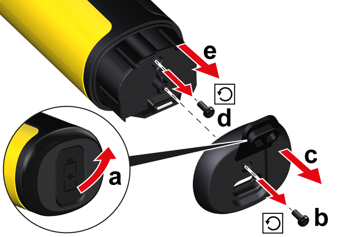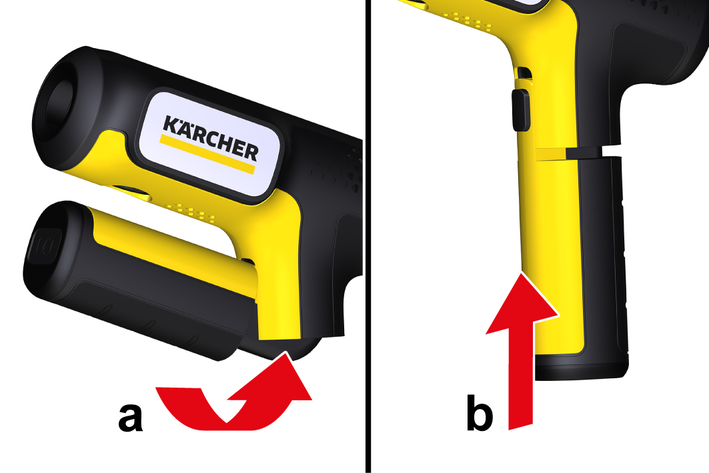 请务必仅使用 Kärcher 认证的电池或电池组更换受损及耗损的电池或电池组。拆卸电池: