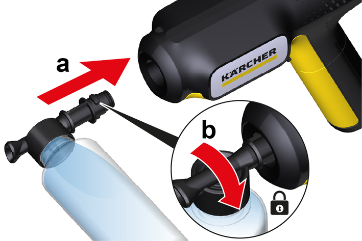 将泡沫喷嘴与清洁剂罐从设备上拆下。