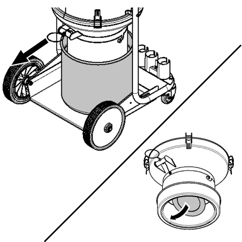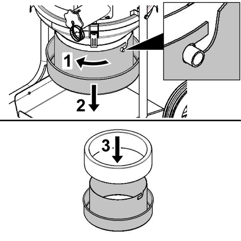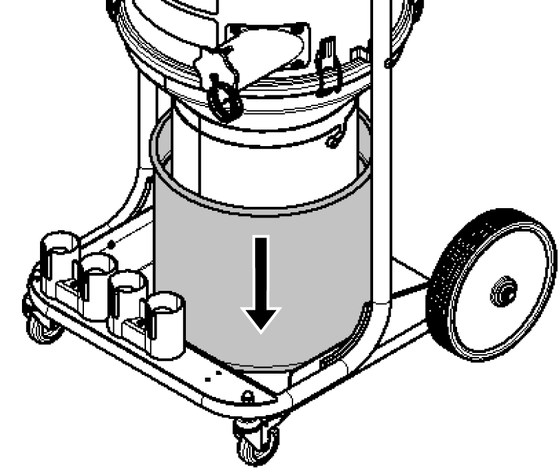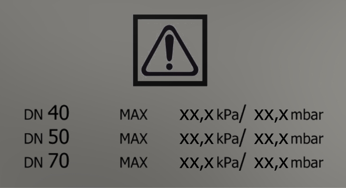 Etiket, kullanılan emme hortumu kesitine göre maksimum negatif basınç değerlerini gösterir. Gerçek değer manometreden okunabilir. Bu cihaz için geçerli olan değerler için bkz. Bölüm Minimum hacimsel akışı okuyun. Bu değerin altına düşülürse filtre temizlenmeli (bkz. Bölüm Ana filtrenin temizlenmesi) veya değiştirilmelidir (bkz. Bölüm Ana filtrenin değiştirilmesi). Farklı emme hortumu kesitleri, aksesuarların farklı bağlantı kesitlerine uyum sağlamasını mümkün kılar.