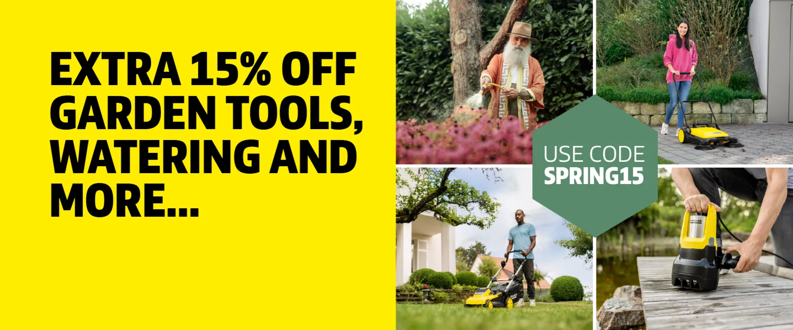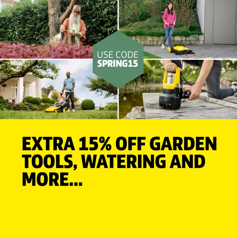 Get 15% off Garden tools, Watering & Irrigation, Pumps and Sweepers when you use code SPRING15 at checkout today!