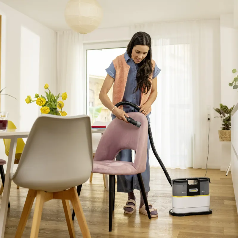 The special problem-solver: With our Capet and Spot Cleaners, you can remove even the most stubborn dirt, on almost all textile surfaces. From car seats and carpets, doormats to garden furniture, upholstery or fabric covers – Kärcher's Carpet and Spot Cleaners offer a wide range of applications indoors and out. Grease, dirt and odours? They no longer have a chance!